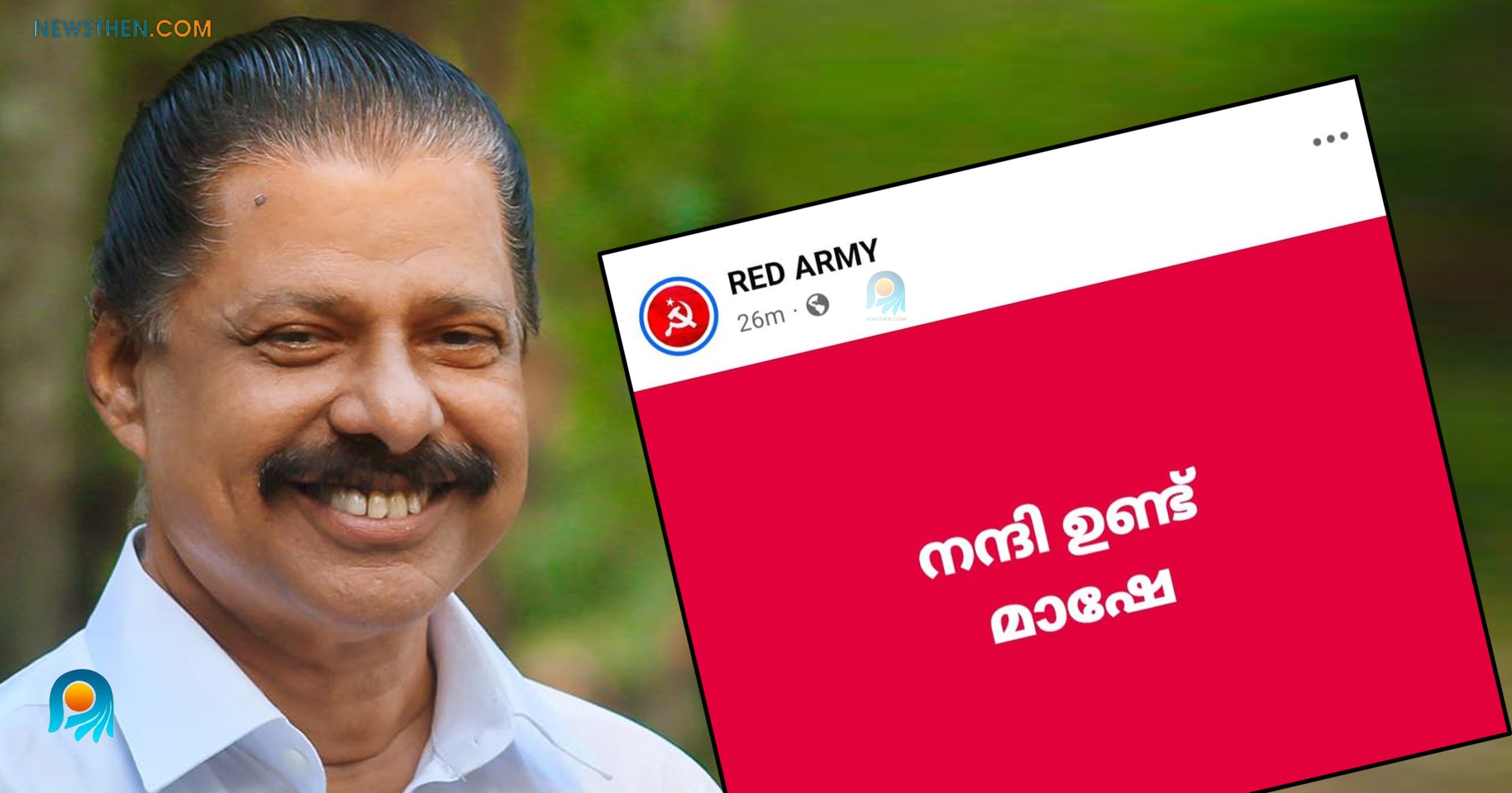 കണ്ണൂര്: നിലമ്പൂരിലെ എല്ഡിഎഫ് തോല്വിക്ക് പിന്നാലെ സിപിഎം സംസ്ഥാന സെക്രട്ടറി എം.വി. ഗോവിന്ദന് നേരെ ഒളിയമ്പെയ്ത് കണ്ണൂരിലെ റെഡ് ആര്മി ഫേസ്ബുക്ക് പേജ് . നന്ദിയുണ്ട് മാഷേ എന്നായിരുന്നു എഫ്ബി പോസ്റ്റ്. ആര്എസ്എസുമായി സഹകരിച്ചുവെന്ന എം.വി. ഗോവിന്ദന്റെ പരാമര്ശം വിവാദമായ സാഹചര്യത്തിലാണ് മുന്പ് പി.ജെ. ആര്മി എന്ന പേരില് അറിയപ്പെട്ടിരുന്ന റെഡ് ആര്മിയുടെ ഒളിയമ്പ്.