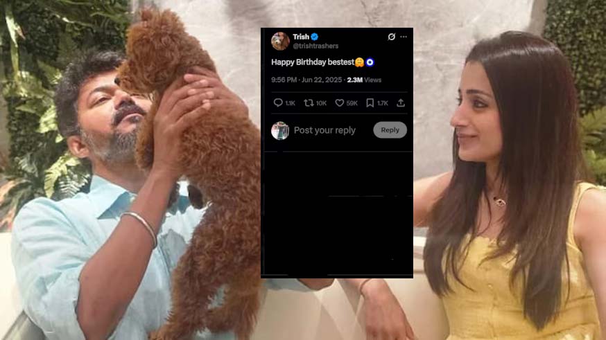 അവരുടെ സൗഹൃദത്തിന്റെ ആഴം വെളിപ്പെടുത്തി. പോസ്റ്റിനൊപ്പം, വിജയ് തൃഷയുടെ വളര്‍ത്തുനായ ഇസ്സിയോടൊപ്പം കളിക്കുന്ന ഒരു മനോഹര ചിത്രവും പങ്കുവെച്ചു. ഈ ചിത്രം ആരാധകര്‍ക്കിടയില്‍ വൈറലായിട്ടുണ്ട്. ‘ഹാപ്പി ബര്‍ത്ത്‌ഡേ ബെസ്റ്റസ്റ്റ്’ എന്ന തൃഷയുടെ ഫോട്ടോയ്ക്കുള്ള ക്യാപ്ഷന്‍.