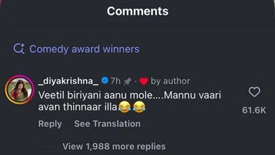 അശ്വിന് പൂവാലനെപ്പോലെ പെരുമാറുന്നുവെന്ന് ജീവനക്കാരി; ‘വീട്ടില് ബിരിയാണി ആണ് മോളെ.. മണ്ണുവാരി തിന്നാറില്ല’ എന്ന തകര്പ്പന് മറുപടിയുമായി ദിയകൃഷ്ണ; കമന്റിന് മാത്രം ഒരു ലക്ഷത്തിലേറെ പേരുടെ പിന്തുണ