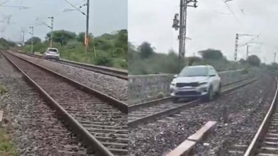എട്ടു കിലോമീറ്റര് റെയില് പാളത്തിലൂടെ കാറോടിച്ചു, പോലീസിനുനേരെ യുവതിയുടെ പരാക്രമം; നിര്ത്തിയിട്ടത് നാലു ട്രെയിനുകള്