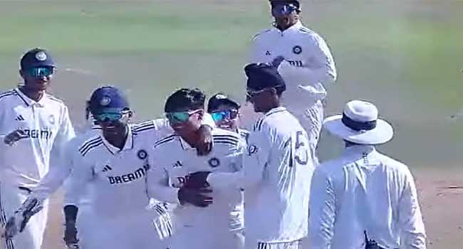 അതേസമയം യൂത്ത് ടെസ്റ്റിൽ വൈഭവിന്റെ കന്നി വിക്കറ്റാണിത്. ഇടംകയ്യൻ ഓർത്തഡോക്സ് ബോളറായ വൈഭവ്, ഇംഗ്ലണ്ട് ഇന്നിങ്സിലെ 45–ാം ഓവറിലാണ് ഹംസ ഷെയ്ഖിനെ പുറത്താക്കിയത്. ലോ ഫുൾടോസ് ആയിട്ടെത്തിയ പന്ത് ബൗണ്ടറി കടത്താനുള്ള ശ്രമത്തിൽ ലോങ് ഓഫിൽ ഹെനിൽ പട്ടേലിന് ക്യാച്ച് സമ്മാനിച്ചായിരുന്നു ഹംസ ഷെയ്ഖിന്റെ മടക്കം. 14 വർഷവും 107 ദിവസവും പ്രായമുള്ളപ്പോഴാണ് വൈഭവിന്റെ ഈ വിസ്മയ പ്രകടനം.
