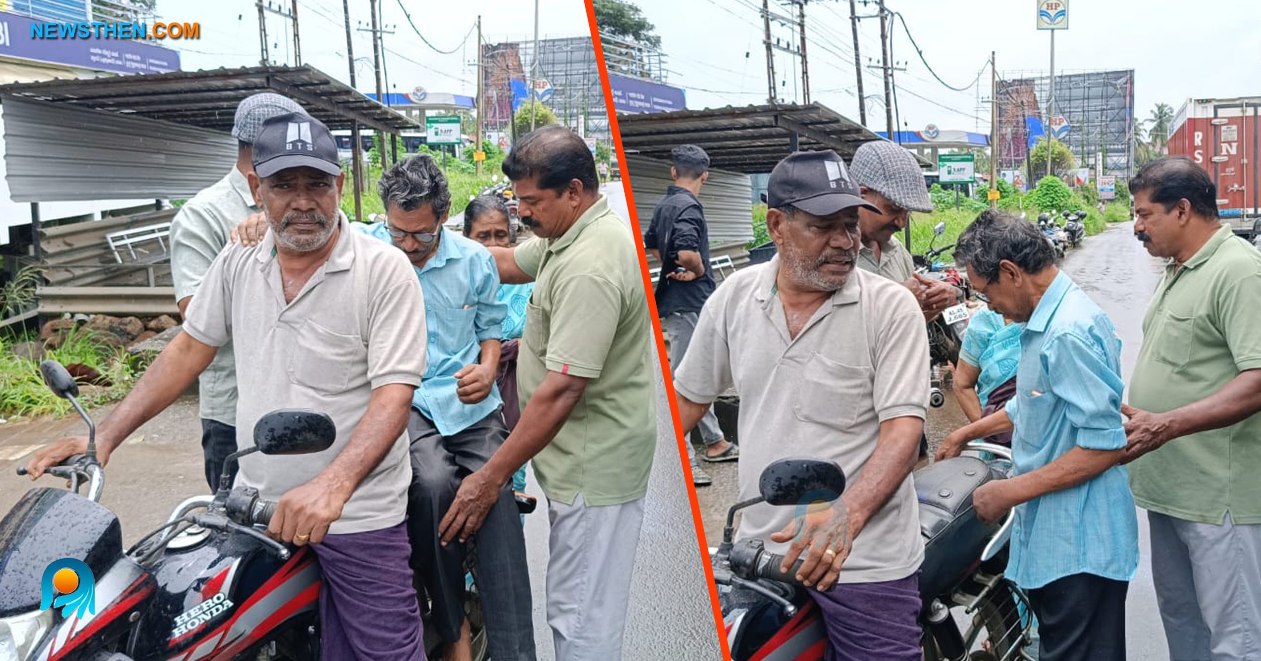 ഈ സമയം ബാങ്കിലേക്ക് എത്തിയ വിശ്വനാഥനും ബാങ്കിലെ ജീവനക്കാരനായ സിന്റോയും ടാക്സികള് വിളിച്ചു നോക്കിയെങ്കിലും തിരക്കിലൂടെ കടന്നുവരാന് കഴിയാത്ത സ്ഥിതിയായിരുന്നു. തുടര്ന്ന് വിശ്വനാഥനും സിന്റോയും ചേര്ന്ന് ബാങ്കിലേക്ക് വന്നയാളുടെ ബൈക്കില് കയറ്റി ഇരുത്തി വീട്ടിലേക്ക് എത്തിക്കുകയായിരുന്നു. ആശുപത്രിയില് നിന്നും ഒരു കിലോമീറ്റര് ദൂരത്തുള്ള വീട്ടിലേയ്ക്ക് പോകാനാകാതെ നാല് മണിക്കൂറാണ് ആശുപത്രിക്ക് മുന്പില് നില്ക്കേണ്ടി വന്നത്.