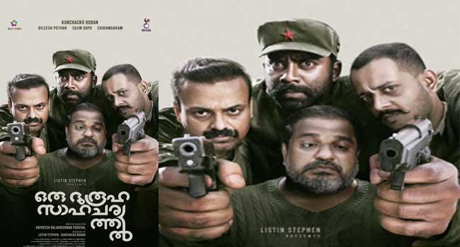 കൊച്ചി; ഇരു വശത്തും തോക്കുധാരികളായി കുഞ്ചാക്കോ ബോബനും ചിദംബരവും, മുകളിലും നടുവിലുമായി റംമ്പാൻ എന്ന പേരുമായി പ്രശസ്തിയാർജിച്ച സജിൻ ഗോപു, പിന്നെ ദിലീഷ് പോത്തനും. ഇന്നു പുറത്തുവിട്ട , രതീഷ് ബാലകൃഷ്ണപ്പൊതുവാൻ തിരക്കഥ രചിച്ച് സംവിധാനം ചെയ്യുന്നഒരു ദുരൂഹ സാഹചര്യത്തിൽ എന്ന ചിത്രത്തിൻ്റെ ഫസ്റ്റ് ലുക്ക് പോസ്റ്ററാണിത്.