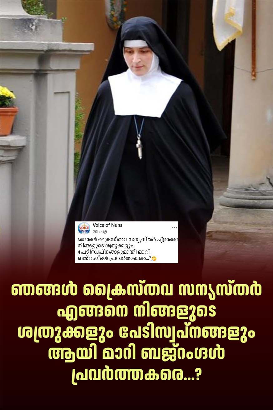 ഞങ്ങള് ക്രൈസ്തവ സന്യസ്തര് എങ്ങനെ നിങ്ങളുടെ ശത്രുക്കളും പേടിസ്വപ്നങ്ങളുമായി മാറി ബജ്റംഗ്ദള് പ്രവര്ത്തകരെ…