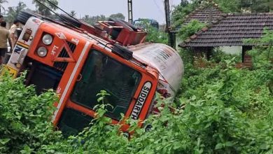കാഞ്ഞങ്ങാട് അരക്കിലോമീറ്റര് ചുറ്റളവില് ജനങ്ങളെ ഒഴിപ്പിക്കുന്നു; നടുറോഡില് മറിഞ്ഞ ഗ്യാസ് ടാങ്കറിലെ വാല്വ് പൊട്ടി വാതക ചോര്ച്ച