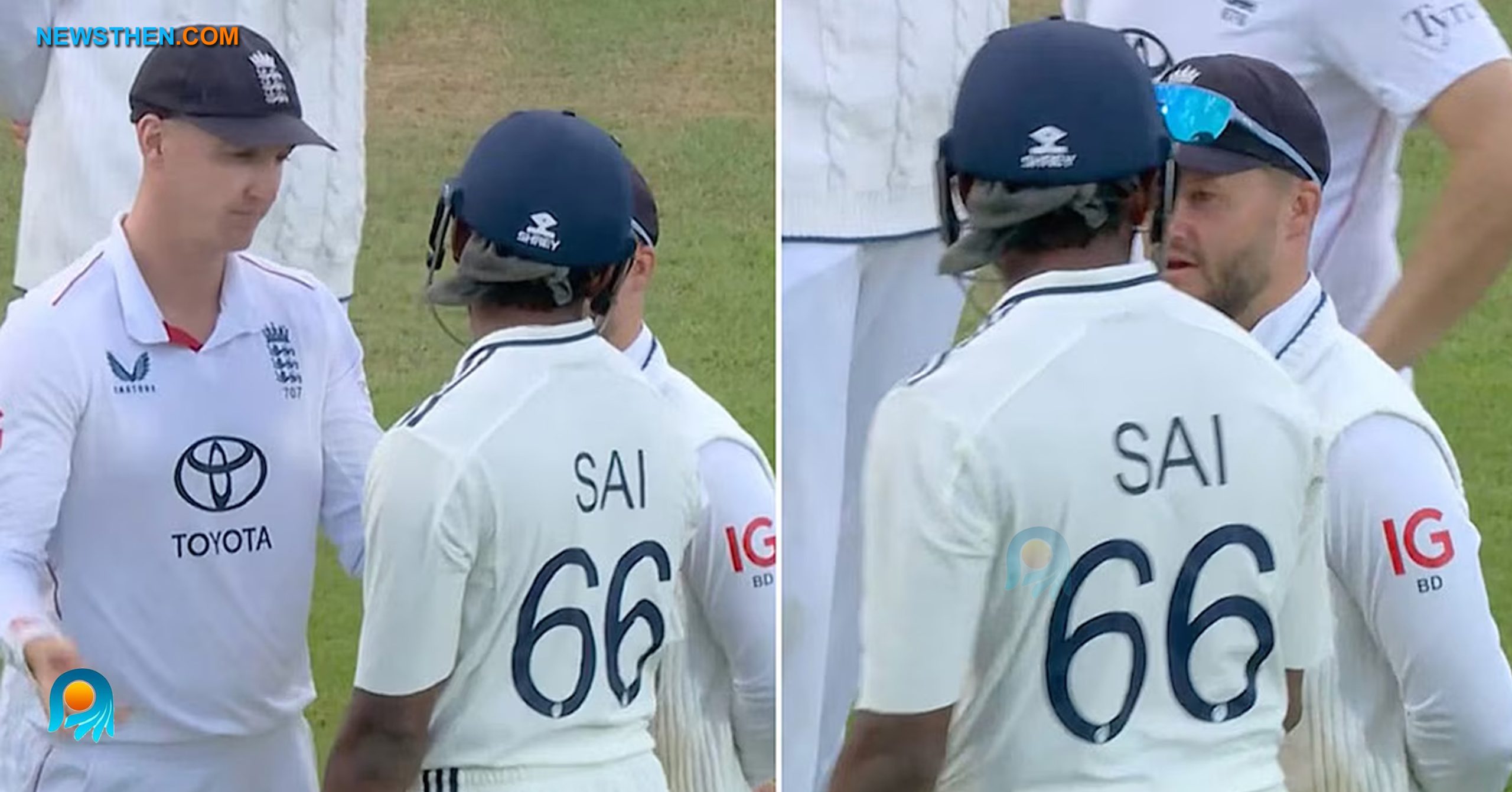 ഓപ്പണർ കെ.എൽ. രാഹുൽ പുറത്തായതിനു പിന്നാലെ വൺഡൗണായാണ് സായ് സുദർശൻ ബാറ്റിങ്ങിന് എത്തിയത്. 29 പന്തിൽ ഒരു ഫോർ സഹിതം 11 റൺസുമായി ഗസ് അറ്റ്കിൻസണിന്റെ പന്തിൽ വിക്കറ്റിനു മുന്നിൽ കുരുങ്ങി പുറത്താവുകയും ചെയ്തു. 18–ാം ഓവറിലെ രണ്ടാം പന്തിലായിരുന്നു സായ് സുദർശന്റെ മടക്കവും ബെൻ ഡക്കറ്റുമായുള്ള വാക്പോരും.