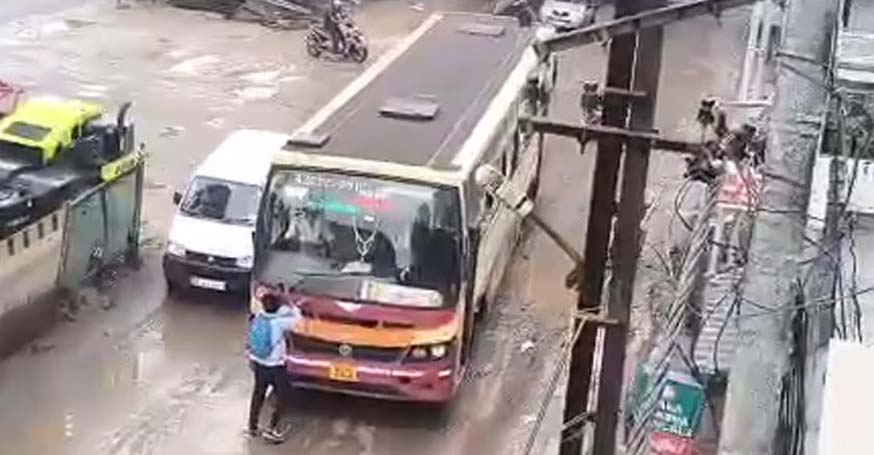 ചെളിവെള്ളം തെറിപ്പിച്ചതിനെതിരെ പ്രതിഷേധിച്ചു; വിദ്യാര്ഥിയെ ബസിടിപ്പിക്കാന് ശ്രമിച്ച് കെഎസ്ആര്ടിസി ഡ്രൈവര്