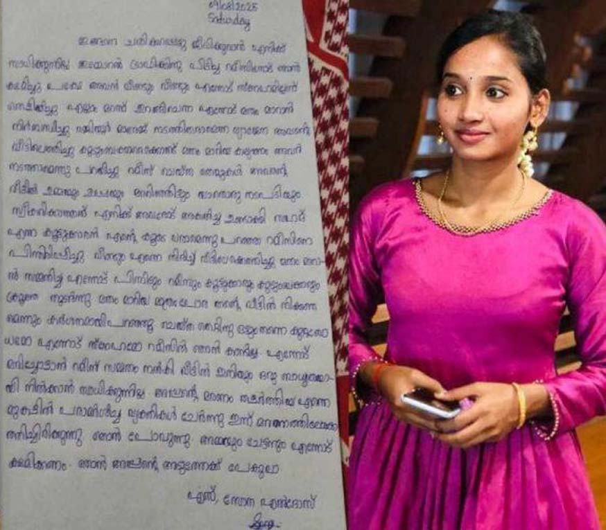 സോന എല്ദോസിന്റെ ആത്മഹത്യാ കുറിപ്പ് ഇങ്ങനെ: