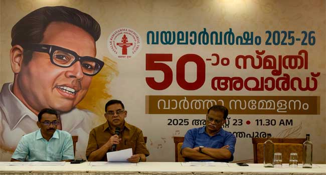 ലോകമെമ്പാടുമുള്ള മലയാളികളെ കോർത്തിണക്കി വയലാർവർഷം 2025-26, 50-ാം സ്മൃതി അവാർഡ് സംഘടിപ്പിക്കുന്നു