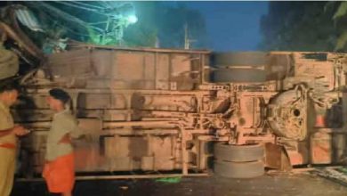 ബസ് മറിഞ്ഞത് മരത്തിലും കാറിലും ഇടിച്ച ശേഷം നടുറോഡിന് കുറുകെ: തൃശൂര് കുന്നംകുളം റോഡില് ബസ് മറിഞ്ഞ് അപകടം; 10 പേര്ക്ക് പരിക്ക്