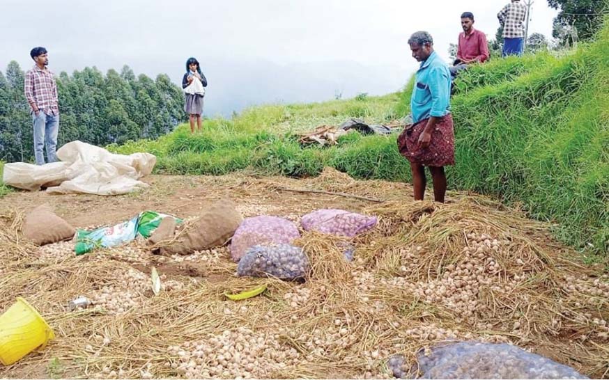 തുടരുന്ന തലവേദന! മാസങ്ങളുടെ അധ്വാനം വെള്ളത്തിലായി; വിളവെടുത്ത വെളുത്തുള്ളി കാട്ടാനക്കൂട്ടം നശിപ്പിച്ചു