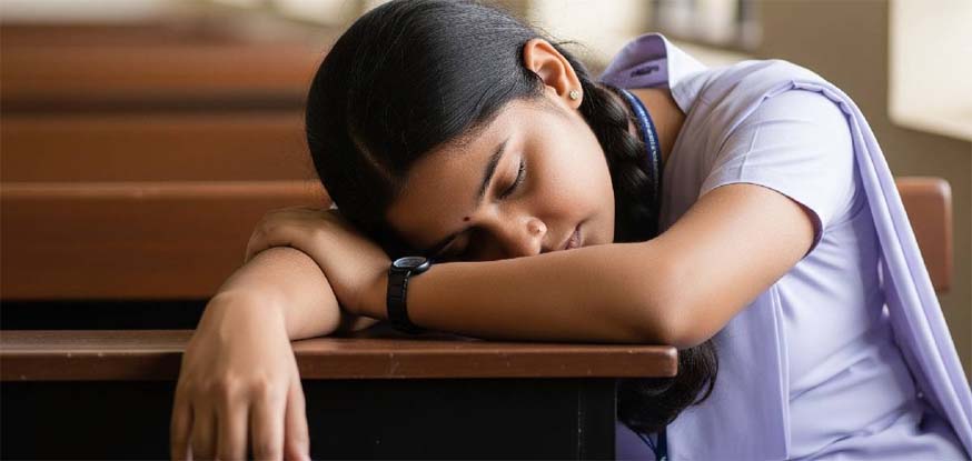 രാത്രി ഹൃദ്രോഗിയായ അമ്മയെശുശ്രൂഷിച്ചു; കൊല്ലത്ത് ക്ലാസ്മുറിയില് ഉറങ്ങിയ വിദ്യാര്ത്ഥിനിയെ മര്ദിച്ച് അധ്യാപിക