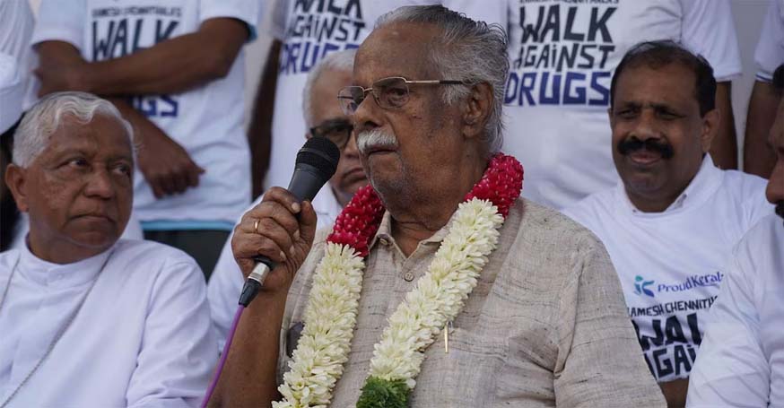 കണ്ണൂര്‍: പൊലീസിന്റെ ഇടികൊണ്ട് മരിക്കാന്‍ പറ്റാത്തതുകൊണ്ട് ബഹുമാനമില്ലെങ്കിലും മന്ത്രിയെ ‘ബഹുമാനപ്പെട്ട’ എന്നു വിശേഷിപ്പിക്കുന്നുവെന്ന് എഴുത്തുകാരന്‍ ടി. പത്മനാഭന്‍. ലഹരിക്കെതിരെ മുന്‍ പ്രതിപക്ഷ നേതാവ് രമേശ് ചെന്നിത്തലയുടെ നേതൃത്വത്തില്‍ നടത്തിയ സമൂഹ നടത്തം ഉദ്ഘാടനം ചെയ്യവേയാണ് പരാമര്‍ശം. കള്ളു മുതല്‍ എല്ലാ ലഹരി വസ്തുക്കളും നിഷിദ്ധമാണ്. സര്‍ക്കാരിന്റെ ഏറ്റവും വലിയ വരുമാനം ലഹരി വസ്തുക്കള്‍ വിറ്റിട്ടാണെന്നും അദ്ദേഹം പറഞ്ഞു.