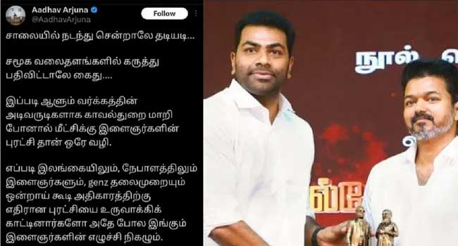 പോലീസ് ഭരണവർഗത്തിന്റെ അടിമകളായി മാറിയാൽ, ക്രമസമാധാനം പുനഃസ്ഥാപിക്കാനുള്ള ഒരേയൊരു വഴി യുവജന വിപ്ലവം, ശ്രീലങ്കയും നേപ്പാളും ഇവിടെയും സംഭവിക്കും,41 പേരുടെ മരണത്തിനു പിന്നാലെ ടിവികെ നേതാവിന്റെ പോസ്റ്റ്