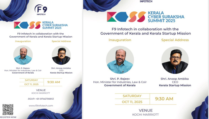 കൊച്ചി : കേരളത്തിലെ ചെറുകിട, ഇടത്തരം സംരംഭങ്ങൾക്കും (എംഎസ്എംഇ) സ്റ്റാർട്ടപ്പുകൾക്കും സൈബർ ലോകത്ത് സുരക്ഷിതത്വം ഉറപ്പാക്കാൻ ലക്ഷ്യമിട്ട് കേരള സൈബർ സുരക്ഷാ ഉച്ചകോടി (KCSS) 2025 ഒക്ടോബർ 11-ന് കൊച്ചി മാരിയറ്റിൽ വെച്ച് നടക്കും. കേരള സർക്കാരിന്റെയും കേരള സ്റ്റാർട്ടപ്പ് മിഷൻ (KSUM)-ന്റെയും സഹകരണത്തോടെ മൾട്ടി-ക്ലൗഡ്, സൈബർ സുരക്ഷാ രംഗത്തെ ആഗോള സ്ഥാപനമായ എഫ്9 ഇൻഫോടെക് ആണ് ഉച്ചകോടി സംഘടിപ്പിക്കുന്നത്.സൈബർ ഭീഷണികൾ വർധിച്ചുവരുന്ന സാഹചര്യത്തിൽ ഈ സംരംഭങ്ങളുടെ ഡിജിറ്റൽ പ്രതിരോധം ശക്തമാക്കുകയാണ് ഉച്ചകോടിയുടെ പ്രധാന ലക്ഷ്യം.