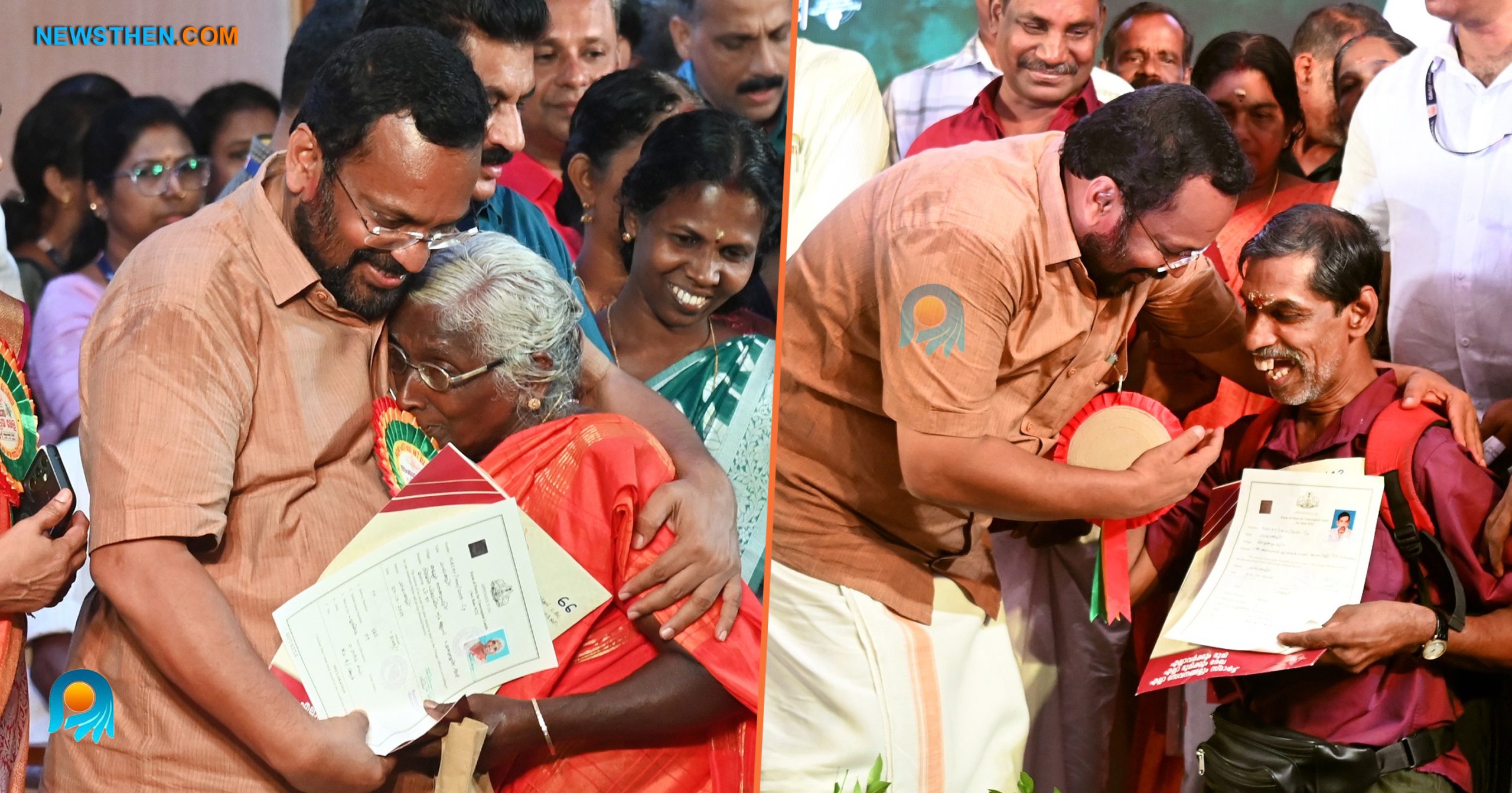 പരിഹരിച്ചത് പതിറ്റാണ്ടുകളുടെ പട്ടയ പ്രശ്നങ്ങള്; അഞ്ചുവര്ഷത്തിനിടെ രണ്ടേകാല് ലക്ഷം പട്ടയങ്ങള്; തൃശൂരിലെ 1349 കുടുംബങ്ങള്കൂടി ഭൂമിയുടെ അവകാശികളായി; ഇന്നലെ മാത്രം നല്കിയത് പതിനായിരം ഭൂഖേകള്; വേദിയില് മന്ത്രിയെ കെട്ടിപ്പിടിച്ച് അമ്മമാര്