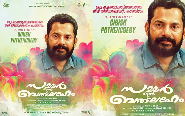 മലയാളത്തിന് എന്നും ഓർക്കാൻ സാധിക്കുന്ന ഒരുപിടി ഗാനങ്ങൾ നൽകിയ ഗിരീഷ് പുത്തഞ്ചേരി എന്ന പേര്, ഒരു സംഗീതാസ്വാധകനും മറക്കാൻ കഴിയില്ല. എഴുതിയ ഓരോ വരികളിൽ ഇപ്പോഴും മൂളുന്ന ആത്മാവും, മായാത്ത ഗാനങ്ങളും സമ്മാനിച്ച പ്രതിഭയെ ഓർക്കാതിരിക്കാൻ സാധിക്കില്ല എന്ന കുറിപ്പോടെ ഗിരീഷ് പുത്തഞ്ചേരിയുടെ പേരിൽ ‘സമ്മര് ഇന് ബത്ലഹേം’ 4K പതിപ്പിൻ്റെ പുറത്തിറങ്ങിയ പുതിയ പോസ്റ്റർ ഏറെ ശ്രദ്ധനേടുന്നു. കഴിഞ്ഞ ചില റീ റിലീസ് ചിത്രങ്ങളിലെ പോസ്റ്ററുകളിൽ നിന്നും അദ്ദേഹത്തിൻ്റെ പേര് ഒഴിവാക്കിയതിൽ സാമൂഹ്യ മാധ്യമങ്ങളിൽ ഏറെ വിമർശനം ഉന്നയിവച്ചിരുന്നു.