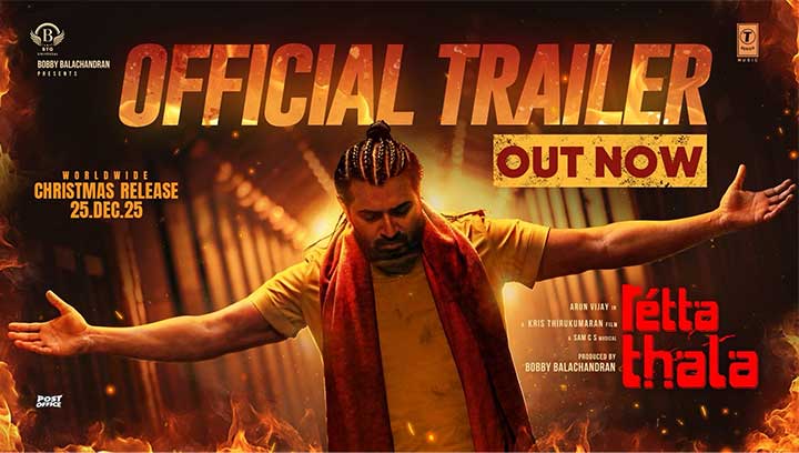 ആക്ഷൻ ഹീറേ അരുണ്‍ വിജയ് നായകനാവുന്ന ‘രെട്ട തല’ 25 ന് റിലീസാവും. ചിത്രത്തിന്റെ ട്രെയിലറിന് ഗംഭീര സ്വീകരണം.