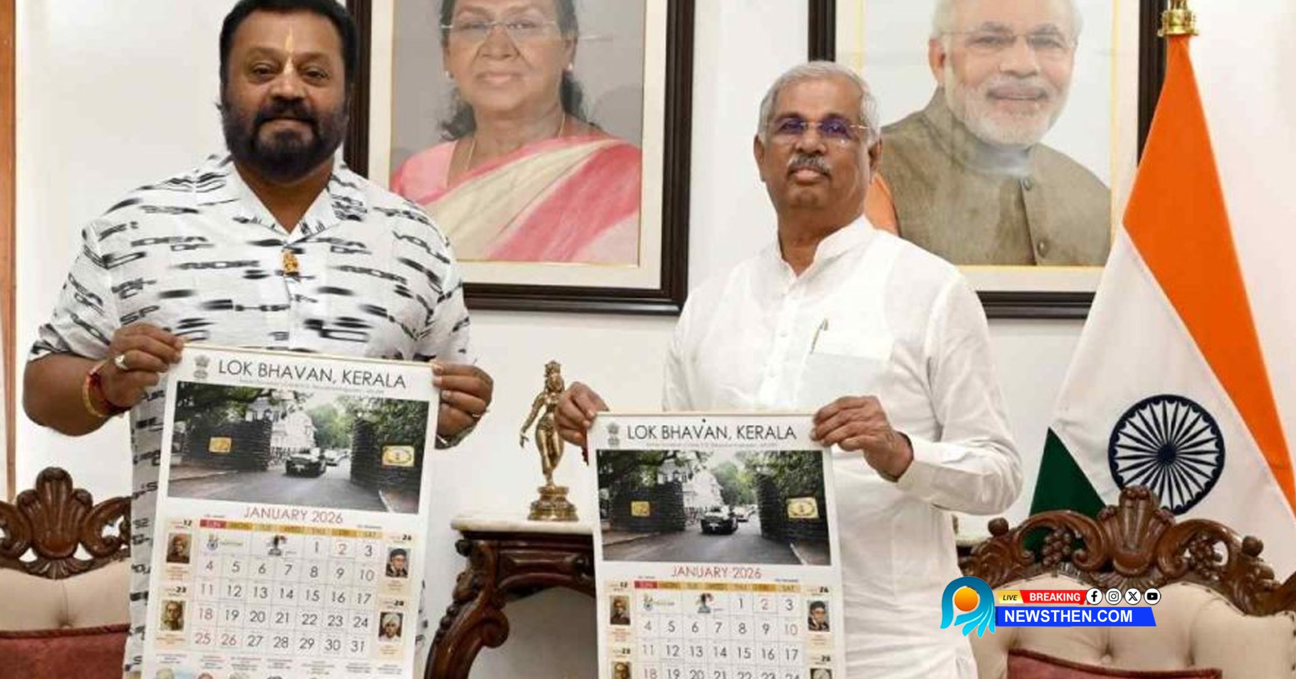 കേന്ദ്രമന്ത്രി സുരേഷ്ഗോപിക്ക് കൈമാറി കേരള ഗവർണർ രാജേന്ദ്ര വിശ്വനാഥ് അർലേക്കർ കലണ്ടർ പ്രകാശനം ചെയ്തു. ലോക്ഭവനിലായിരുന്നു ചടങ്ങ്. കലണ്ടര്‍ പ്രകാശനം ചെയ്യുന്ന ചിത്രങ്ങള്‍ ഗവര്‍ണറുടെ ഫെയ്സ്ബുക്ക് പേജിലും പങ്കിട്ടുണ്ട്. സുരേഷ്ഗോപിയും പോസ്റ്റ് പങ്കിട്ടുണ്ട്.