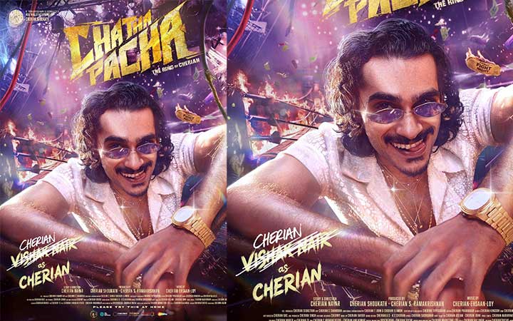 നിറപ്പകിട്ടാർന്ന വസ്ത്രധാരണവും കൂളിംഗ് ഗ്ലാസും സ്വർണ്ണ വാച്ചുമായി, ഒരു ഗുസ്തി ഗോദയുടെ പശ്ചത്താലത്തിൽ സ്റ്റൈലിഷ് ലുക്കിലാണ് വിശാഖ് നായർ പോസ്റ്ററിൽ പ്രത്യക്ഷപ്പെടുന്നത്. പറക്കുന്ന കറൻസി നോട്ടുകളും സ്പാർക്കുകളും ഗുസ്തി റിംഗിലെ ചിഹ്നങ്ങളും ചെറിയാന്റെ സ്വഭാവത്തിലെ ആഡംബരവും ഊർജ്ജവും വിളിച്ചോതുന്നു.