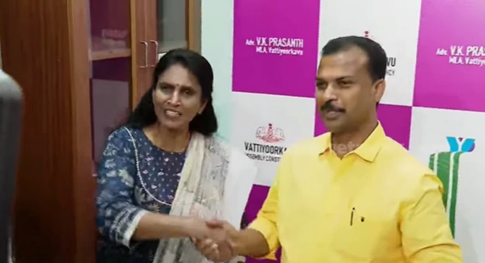 അതിനിടെ എംഎല്എ ഓഫീസിലെത്തി കൗണ്സിലര് ആര് ശ്രീലേഖ വി കെ പ്രശാന്തിനെ കണ്ടു.