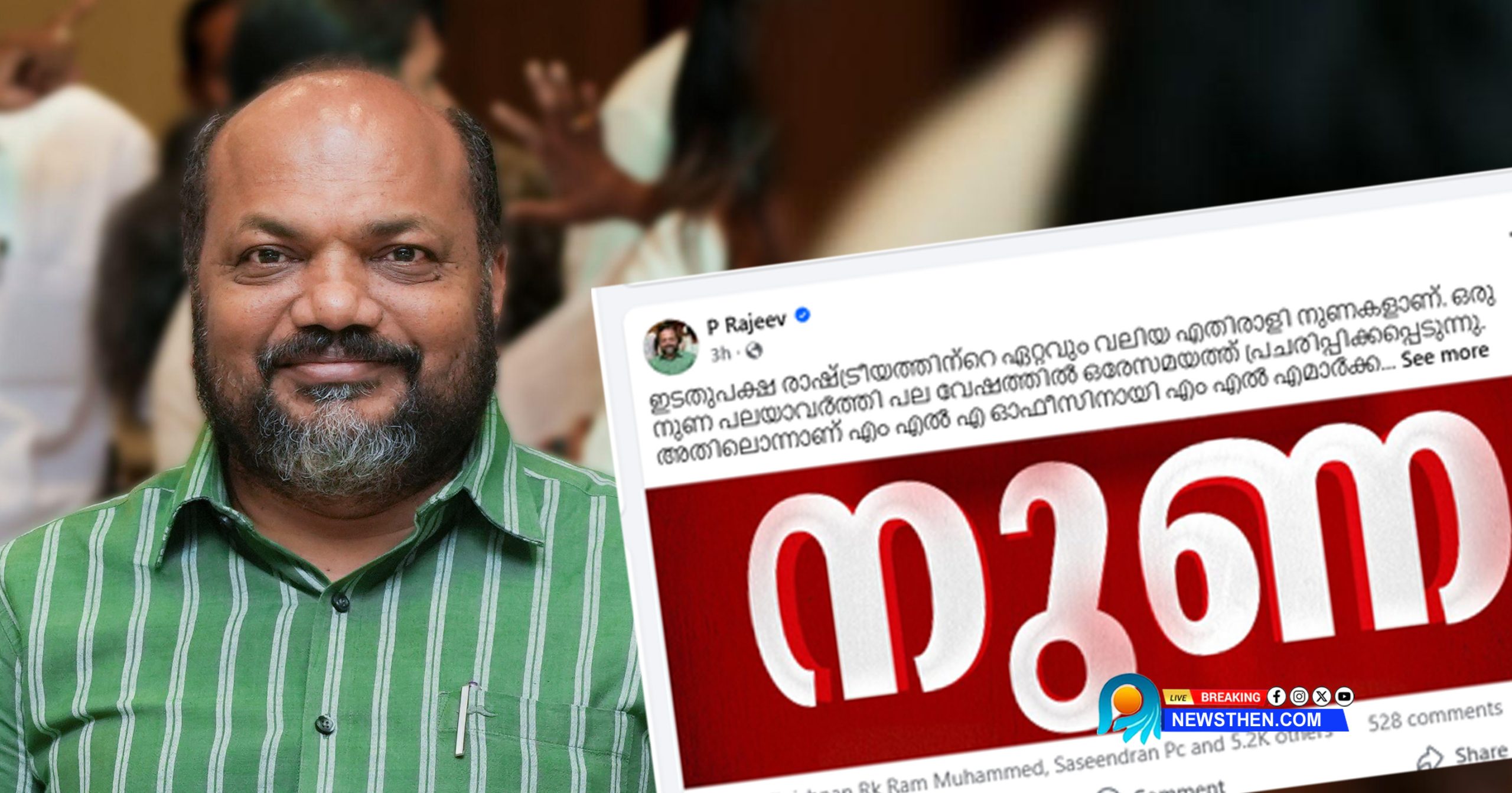‘മീഡിയ വണ്ണും സംഘപരിവാറും പറയുന്ന നുണകളാണ് ഇടതുപക്ഷത്തിന്റെ ശത്രു; എംഎല്എമാര്ക്ക് 25,000 രൂപ അലവന്സ് എന്നത് നുണ പ്രചാരണം; മീഡിയ വണ് കര്ണാടക സിപിഎമ്മിനെക്കുറിച്ചു വ്യാജ വാര്ത്ത ചമച്ചെന്നും’ മന്ത്രി പി. രാജീവ്; സോഷ്യല് മീഡിയയില് വന് വിമര്ശനം