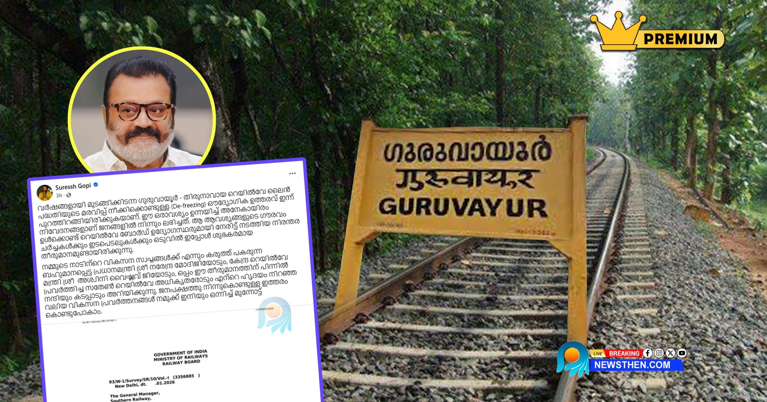 ഒരുവര്ഷം മുമ്പ് മരവിപ്പ് മാറ്റണമെന്ന ശിപാര്ശ നല്കിയത് ദക്ഷിണ റെയില്വേ ജനറല് മാനേജര്; ക്രെഡിറ്റ് അടിച്ചുമാറ്റി സുരേഷ് ഗോപി; ഗുരുവായൂര്- തിരുനാവായ പാതയ്ക്ക് പുതുജീവന്; ഇനി സ്ഥലം ഏറ്റെടുപ്പ് യുദ്ധം; സര്വേയും പാതിവഴിയില്