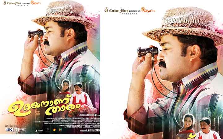 മലയാളത്തിൽ വീണ്ടുമൊരു ചിത്രം റീ റിലീസിനെത്തുന്നു. മോഹൻലാൽ – റോഷൻ ആൻഡ്രൂസ് കൂട്ടുകെട്ടിലിറങ്ങിയ ഹിറ്റ് ചിത്രം ഉദയനാണ് താരമാണ് റീ റിലീസിന് ഒരുങ്ങുന്നത്. ഫെബ്രുവരി 06ന് റീ റിലീസ് ചെയ്യുമെന്ന മോഹൻലാലിൻ്റെ വീഡിയോ അണിയറ പ്രവർത്തകർ പുറത്ത് വിട്ടു. സിനിമയ്ക്കുള്ളിലെ സിനിമയുടെ കഥ പറഞ്ഞ ചിത്രം 21 വര്ഷത്തിനുശേഷം 4K ദൃശ്യ മികവോടെയാണ് തിയേറ്ററില് എത്തുന്നത്. മലയാള സിനിമാലോകത്തെ ഹാസ്യാത്മകവും അതേസമയം ചിന്തിപ്പിക്കുന്നതുമായി അവതരിപ്പിച്ച് വന്വിജയം നേടിയ ചിത്രമായിരുന്നു റോഷന് ആന്ഡ്രൂസ്- മോഹന്ലാല്- ശ്രീനിവാസന് കൂട്ടുകെട്ടില് എത്തിയ ‘ഉദയനാണ് താരം’. റോഷന് ആന്റഡ്രൂസിന്റെ സംവിധാന അരങ്ങേറ്റ ചിത്രം കാള്ട്ടണ് ഫിലിംസിന്റെ ബാനറില് സി. കരുണാകരനാണ് നിര്മിച്ചത്.