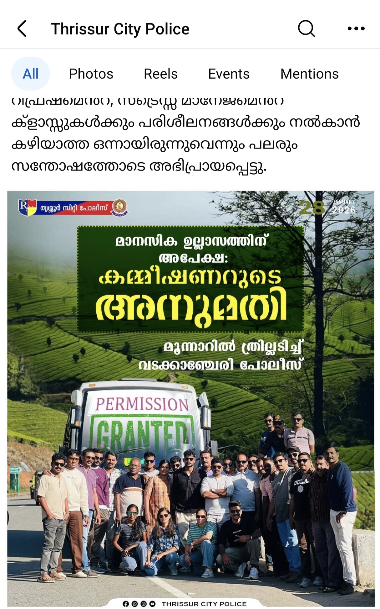 എന്തായാലും തന്റെ സഹപ്രവർത്തകരുടെ ആഗ്രഹം മാനിച്ച്, ഡ്യുട്ടിഫുൾ ആയ അവരെ ബ്യൂട്ടിഫുൾ ആയ ഒരു യാത്രയ്ക്ക് പറഞ്ഞയച്ച തൃശൂർ സിറ്റി പോലീസ് കമ്മീഷണർക്ക് കൊടുക്കാം ഒരു ബിഗ് സല്യൂട്ട്.