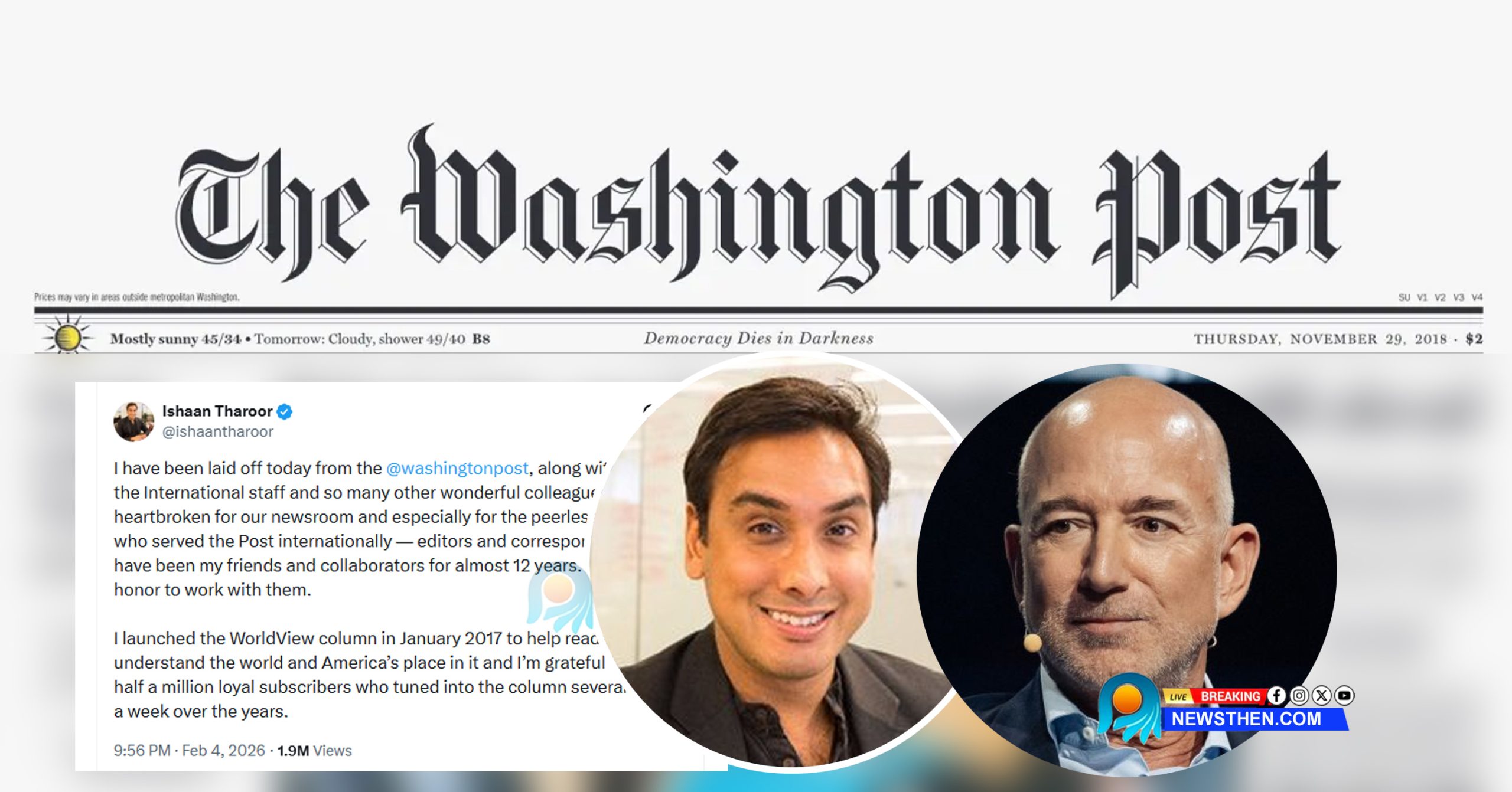 ‘ജനാധിപത്യം ഇരുളില് മരിക്കുന്നു’; വാഷിംഗ്ടണ് പോസ്റ്റില്നിന്ന് പിരിച്ചുവിട്ടതിനു പിന്നാലെ കുറിപ്പുമായി തരൂരിന്റെ മകന്; ജെഫ് ബെസോസിന്റെ ഇടപെടലില് നഷ്ടമായത് ലക്ഷക്കണക്കിന് വരിക്കാരെ; തലമുതിര്ന്ന എഡിറ്റര്മാര് രാജിവച്ചു; ഇതിഹാസ പത്രത്തിന്റെ ചിറകരിയുമ്പോള്