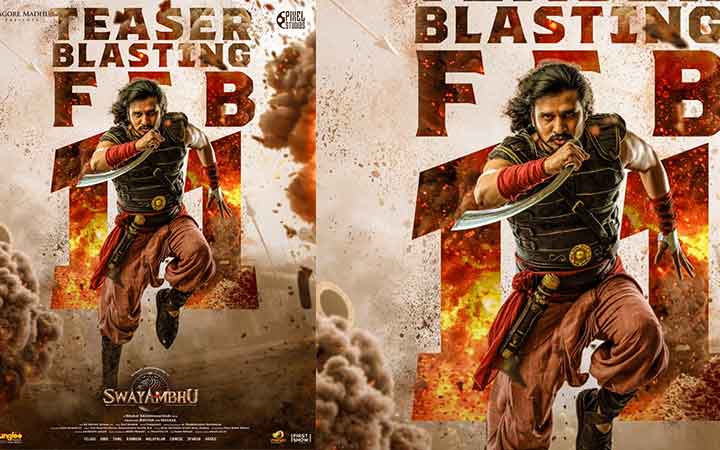 സ്വയംഭുവിന്റെ തീവ്രമായ ലോകത്തിലേക്കുള്ള ആദ്യ കാഴ്ചയാണ് ടീസർ സമ്മാനിക്കുക. ടീസർ റിലീസ് തീയതി പുറത്തു വിട്ടു കൊണ്ടുള്ള പോസ്റ്ററിൽ നിഖിലിനെ ഒരു മഹാ യോദ്ധാവായി ആണ് അവതരിപ്പിച്ചിരിക്കുന്നത്. അനിയന്ത്രിതമായ രോഷത്തോടെ കടന്നു പോകുന്ന കഥാപാത്രമായാണ് ഈ പോസ്റ്ററിൽ അദ്ദേഹത്തെ കാണാൻ സാധിക്കുന്നത്. നീളമുള്ള മുടിയുള്ള, ചുവന്ന ട്രൌസറുകൾ ബൂട്ടുകളിൽ ഘടിപ്പിച്ചിരിക്കുന്ന ഇരുണ്ട കവചിത വസ്ത്രം ധരിച്ച അദ്ദേഹം, ഒരു വമ്പൻ വാളും കയ്യിലേന്തിയാണ് കാണപ്പെടുന്നത്. ഉയരുന്ന പുക, പറക്കുന്ന അവശിഷ്ടങ്ങൾ, അഗ്നിപർവ്വത സ്ഫോടനങ്ങൾ, കത്തുന്ന തീജ്വാലകൾ എന്നിവയുടെ പശ്ചാത്തലത്തിൽ നിൽക്കുന്ന ഈ കഥാപാത്രം, ഇന്ത്യയുടെ സാംസ്കാരിക പൈതൃകത്തിൽ വേരൂന്നിയ ഒരു ഇതിഹാസ യുദ്ധകഥയുടെ സൂചനയാണ് നൽകുന്നത്.
