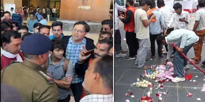 കോളേജ് ക്യാമ്പസിൽ കയറി ബജ്റംഗ്ദൾ പ്രവർത്തകരുടെ ഗുണ്ടാ വിളയാട്ടം, വാലന്റൈൻസ് ഡേ ആഘോഷവേദി അടിച്ചുതകർത്തു, വിദ്യാർഥികളെ മർദിച്ചു, വാലന്റൈൻസ് ഡേയിൽ കമിതാക്കളെ ഒരുമിച്ച് കണ്ടാൽ ആക്രമിക്കും… നഗരത്തിൽ ഹിന്ദുത്വ സംഘടനകളുടെ പോസ്റ്റർ- Video