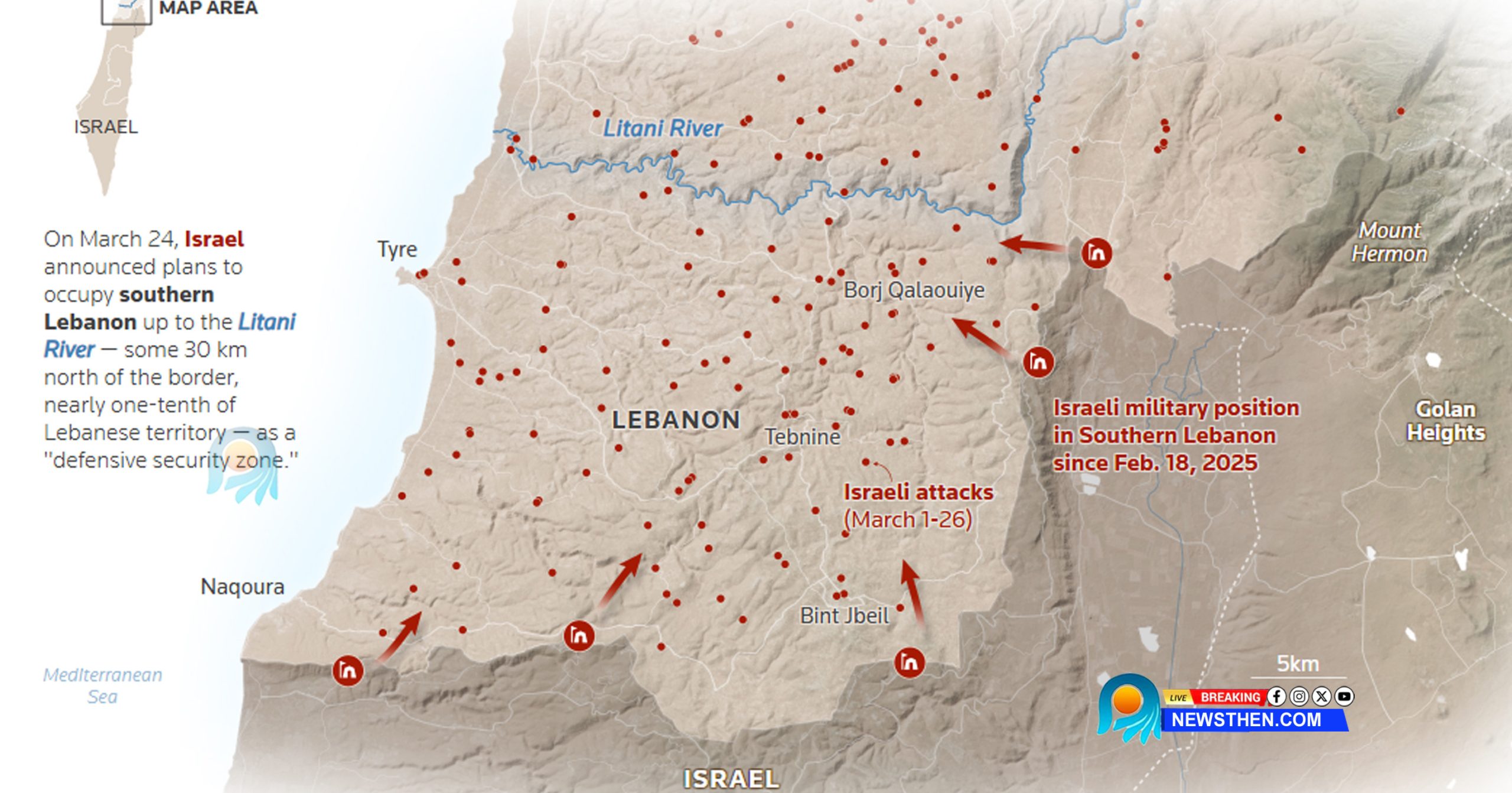 ഇറാന് പിന്തുണയുള്ള സായുധ ഗ്രൂപ്പായ ഹിസ്ബുള്ളയ്ക്കെതിരെ ഒരു ‘ബഫര് സോണ്’ സൃഷ്ടിക്കുന്നതിനായി ലിതാനി നദി വരെയുള്ള ദക്ഷിണ ലെബനന് പിടിച്ചെടുക്കുമെന്ന് ഈ ആഴ്ച ഇസ്രായേല് അറിയിച്ചിരുന്നു. ഇറാനുമായുള്ള ഐക്യദാര്ഢ്യം പ്രഖ്യാപിച്ച് മാര്ച്ച് 2-ന് ഇസ്രായേലിന് നേരെ ഹിസ്ബുള്ള വെടിയുതിര്ത്തതോടെയാണ് ഇസ്രയേല് ലെബനനില് ആക്രമണം തുടങ്ങിയത്. ദക്ഷിണ ലെബനനില് ദീര്ഘകാലം ഇസ്രായേല് അധിനിവേശമുണ്ടാകുമെന്ന ഭീതിയും വര്ധിച്ചിട്ടുണ്ട്. 2000-മാണ്ട് വരെ രണ്ട് പതിറ്റാണ്ടിലധികം കാലം ഈ പ്രദേശം ഇസ്രായേല് സൈന്യത്തിന്റെ നിയന്ത്രണത്തിലായിരുന്നു.