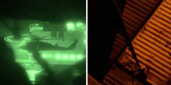 അമേരിക്കൻ സേനയുടെ വിവരമനുസരിച്ച്, ടൗസ്ക എന്ന പേരിലുള്ള കപ്പലിൽ ആറുമണിക്കൂറോളം നീണ്ട മുന്നറിയിപ്പുകൾ അവഗണിച്ചതിനെ തുടർന്ന് നടപടി സ്വീകരിക്കുകയായിരുന്നു. ആദ്യം യുഎസ്എസ് ട്രിപ്പോളി (LHA-7) എന്ന യുദ്ധക്കപ്പലിൽ നിന്ന് മറൈൻസ് ഹെലികോപ്റ്ററിൽ പറന്ന് കപ്പലിലേക്ക് റാപ്പൽ ചെയ്തു.