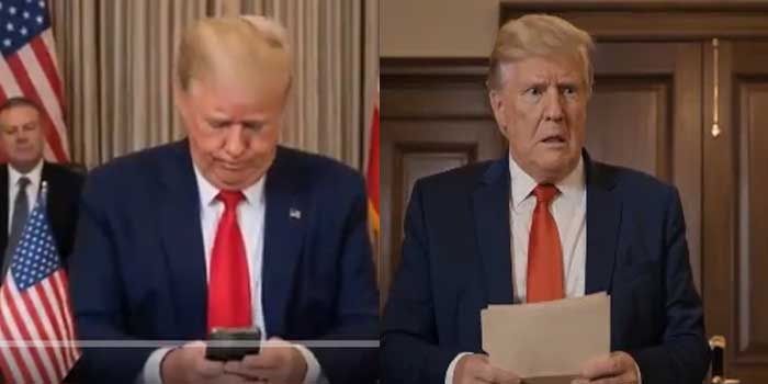 പിന്നാലെ “ഇറാൻ ചർച്ചയ്ക്ക് വരാത്ത പക്ഷം നാം ബോംബ് ഇടും” എന്ന് ഭീഷണിപ്പെടുത്തുന്ന ട്രംപ്, പിന്നീട് ശൂന്യമായ മേശയോട് തന്നെ “ഇറാനികൾ എവിടെയാണ്?” എന്ന് ചോദിക്കുന്നതും വീഡിയോയിൽ കാണാം. അവസാനം, ഒരു സഹായിയിലൂടെ ലഭിക്കുന്ന കുറിപ്പിൽ “Shut up, Trump” എന്ന് എഴുതിയിരിക്കുന്നതും തുടർന്ന് “പാക്കിസ്ഥാന്റെ അഭ്യർത്ഥന പ്രകാരം വെടിനിർത്തൽ നീട്ടാം” എന്ന് പറഞ്ഞ് ട്രംപ് രംഗം വിടുന്നതുമായാണ് വീഡിയോ അവസാനിക്കുന്നത്.