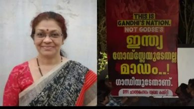 ‘ഇന്ത്യ ഗോഡ്സേയുടെതല്ല മാഡം ഗാന്ധിയുടേതാണ്’, ഷൈജ ആണ്ടവൻ്റെ വീടിന് മുന്നില് ഫ്ലക്സ് സ്ഥാപിച്ച് ഡിവൈഎഫ്ഐ