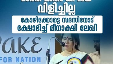 ഭാരത് മാതാ കീ ജയ് വിളിച്ചില്ല; കോഴിക്കോട്ടെ പരിപാടിക്കിടെ സദസിനോട് ക്ഷോഭിച്ച് കേന്ദ്ര വിദേശകാര്യ സഹമന്ത്രി മീനാക്ഷി ലേഖി