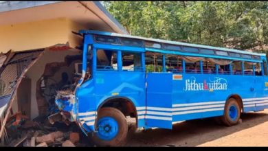 സ്വകാര്യ ബസ് ക്ഷേത്ര കമ്മിറ്റി ഓഫീസ് കെട്ടിടത്തിലേക്ക് ഇടിച്ചുകയറി