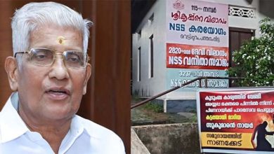 ജനറല് സെക്രട്ടറി നായര് സമുദായത്തിന് നാണക്കേട്, കട്ടപ്പയായി മാറി, പിണറായിക്ക് പാദസേവ ചെയ്യുന്നു; സുകുമാരന് നായര്ക്കെതിരെ വെട്ടിപ്പുറത്ത് ബാനര്