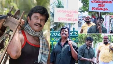 പാവപ്പെട്ടവര്ക്ക് നീതി ഉറപ്പാക്കുക; സെക്രട്ടേറിയറ്റിന് മുന്നില് പോസ്റ്ററുമായി ഭീമന് രഘു!