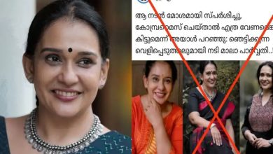 ഒരിക്കല് കൂടി വ്യക്തമാക്കട്ടെ… ഞാന് ആരെക്കുറിച്ചും ഒന്നും പറഞ്ഞ്, ആരെയും ഞെട്ടിച്ചിട്ടില്ല; വ്യാജവാര്ത്തയ്ക്കെതിരേ മാല പാര്വതി