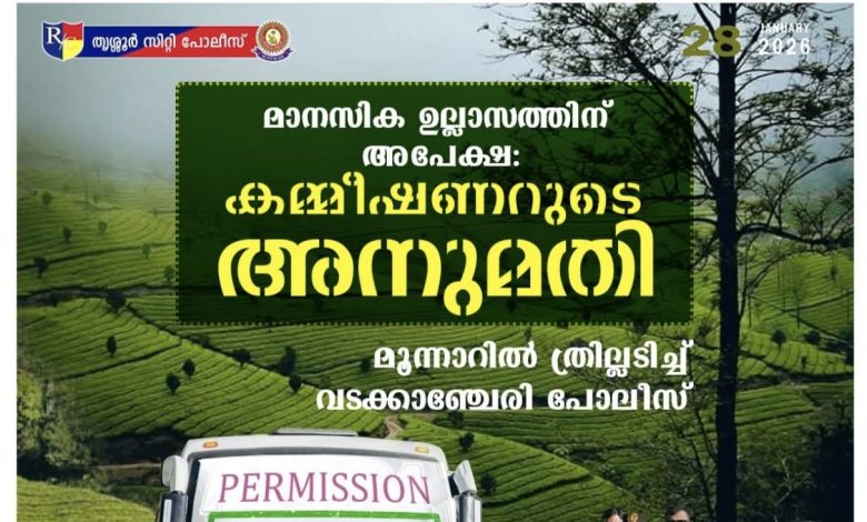 കമ്മീഷണർ അനുമതി കൊടുത്തു: വടക്കാഞ്ചേരി സ്റ്റേഷനിലെ പോലീസുകാർ ടൂർ പോയി : മൂന്നാർ ട്രിപ്പിൽ ത്രില്ലുമായി പോലീസുകാർ