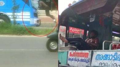 ഓടുന്ന ബസിനു മുന്നില് ചാടി യുവാവിന്റെ സാഹസം; ചില്ല് തകര്ന്ന് റോഡില്, ഡ്രൈവിങ് സീറ്റിലും പരാക്രമം