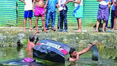 കാർ നിയന്ത്രണം വിട്ട് തോട്ടിലേക്കു മറിഞ്ഞു. കാറിലുണ്ടായിരുന്ന 5 യാത്രക്കാരും അത്ഭുതകരമായി രക്ഷപ്പെട്ടു