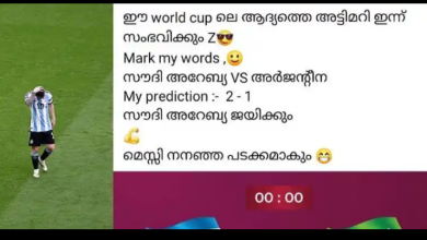 ദോഹ : ഖത്തർ ലോകകപ്പിലെ ആദ്യ അട്ടിമറിക്ക് ലോകം ഇന്ന് സാക്ഷ്യം വഹിച്ചു.വെറും അട്ടിമറിയായിരുന്നില്ല.ഫുട്ബോൾ മിശിഹ ലയണൽ മെസ്സിയുടെ സാക്ഷാൽ അർജന്റീനയെയാണ് സൗദി അറേബ്യ 2-1 ന് തകർത്തു വിട്ടത്. ലുസൈല് സ്റ്റേഡിയത്തിലെ ആവേശപ്പോരില് ഒരു ഗോളിന് പിന്നില് നിന്ന ശേഷമാണ് ഇരട്ട ഗോളുമായി സൗദി അറേബ്യ ലാറ്റിനമേരിക്കന് ചാമ്ബ്യന്മാര്ക്ക് ആദ്യ ഗ്രൂപ്പ് മത്സരത്തില് നാണംകെട്ട തോല്വി സമ്മാനിച്ചത്. അര്ജന്റീനക്കായി പെനാൽറ്റിയിലൂടെ ലിയോണല് മെസിയും സൗദിക്കായി സലേ അല്ഷെഹ്രിയും സലീം അല്ദാവസാരിയും വലകുലുക്കി. അതേസമയം ഈ മത്സരത്തിന്റെ ഫലം നേരത്തെ പ്രവചിച്ച് സോഷ്യല് മീഡിയയില് താരമാകുകയാണ് മലയാളി യുവാവ്. വേള്ഡ് മലയാളി സര്ക്കിള് എന്ന ഗ്രൂപ്പിലാണ് മധു മണക്കാട്ടില് എന്ന ഫേസ്ബുക്ക് ഉപയോക്താവ് പ്രവചനം നടത്തിയത്. പ്രവചനം ഇങ്ങനെയായിരുന്നു. ഈ world cup ലെ ആദ്യത്തെ അട്ടിമറി ഇന്ന് സംഭവിക്കും Z Mark my words സൗദി അറേബ്യ VS അര്ജന്റീന My prediction :- 2 – 1 സൗദി അറേബ്യ…