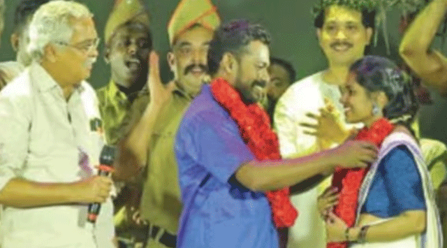 നാടകം അവസാനിച്ച് കര്ട്ടന്വീണതിന് തൊട്ടുപിന്നാലെ അതേ വേദിയില് തന്നെ പ്രധാന നടന്റെ കല്യാണവും നടന്നു ; ഇരുവരും പരസ്പരം രക്തഹാരം അണിയിച്ചു, കൈപിടിച്ചു നല്കിയത് ബിനോയ് വിശ്വം