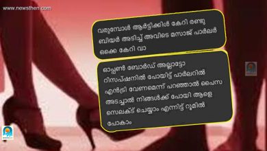 ‘2500 രൂപ കൊടുത്താല് ആരെയും കിട്ടും, ഒരു രക്ഷയുമില്ലാത്ത ഐറ്റംസ്’; ‘കുടുംബനാഥ’ന്റെ യുവതിയുമായുള്ള ചാറ്റുകള് പുറത്ത്; ഇതൊക്കെ കേരളത്തിലോ എന്നു ഞെട്ടി പോലീസും; കൊച്ചിയിലെ സ്പായുടെ മറവില് സെക്സ് റാക്കറ്റ് തകര്ത്തപ്പോള് പെണ്കുട്ടികളെല്ലാം മലപ്പുറം, കോഴിക്കോട്, കാസര്ഗോഡ് ജില്ലക്കാര്; 15,000 മാസ ശമ്പളം