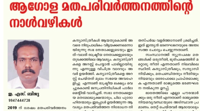 ക്രൈസ്തവരുടെ യോഗം വിളിച്ച് ബിജെപി ; സ്വന്തം വാരികയില് ക്രൈസ്തവ വിരുദ്ധ ലേഖനമെഴുതി ആര്എസ്എസ് ; മിഷിനറിമാരുടെ ലക്ഷ്യം ഇന്ത്യ ക്രൈസ്തവരാജ്യമാക്കല്